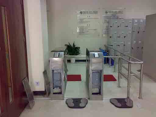 通道口管理设备,当员工身份合法和静电测试通过后,道闸开启,允许员工通过;否则无法通过。