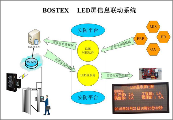 Bostex博太科LED显示屏联动解决方案发布,完美集成上海灵信控制卡,该系统通过TCP/IP网络通讯,将系统内容信息定时或实时传送给LED屏,可广泛适用于各行各业!