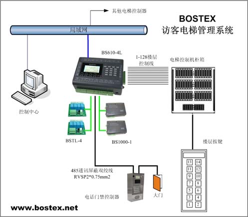 该系统采用Linux嵌入式操作系统和ARM技术,以及BOSTEX独特的多阶层总线通讯控制技术,是对传统的对讲系统通过干结点与感应卡电梯管理系统联动,以实现访客管理方式的一次革命性突破。它不仅节省了大量的线材、布线施工成本和住户房间的对讲终端设备,而且极大地提高了系统的可靠性,避免了电梯环境下严重的电磁波干扰给传统联动造成的调试施工困难,维护成本几乎为零。