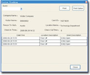 Visitor Management Software is able to query and print out any visitor check in time, check out time and their access record. If visitor did not check out after a predefine period, the system will activate an alarm.