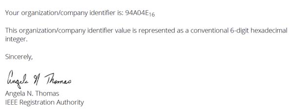 博太科BOSTEX于2016年9月7日获得IEEE的正式授权许可,获得了94A04E OUI开头的MAC地址,至此,博太科BOSTEX的网络产品,都将正式具有国际认证的身份ID,为BOSTEX产品在国际市场的竞争舞台中添加重要砝码。该地址的获得,还能提高工程师现场寻找设备的效率:通过网络查看工具,能一眼分辨出网络中BOSTEX的设备,方便现场工程师进行设备调试等;同时,提高公司的品牌知名度。