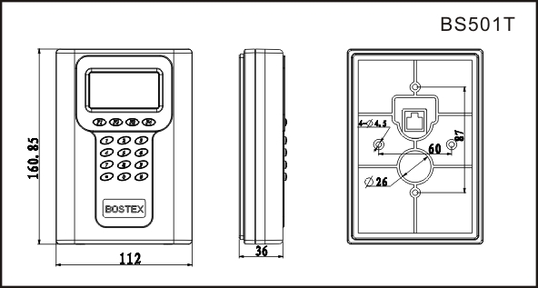 Reads HID125 KHZ proximity card; Reading Distance >4cm |