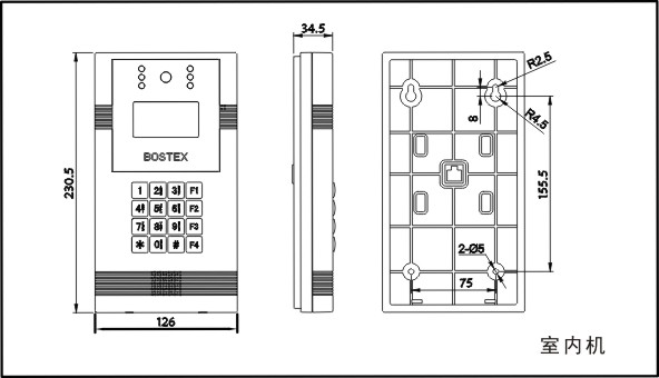 128x64 dots LCD, Outdoor Type: 4x4 metal keypad;Indoor Type: 4x4 standard keypad |